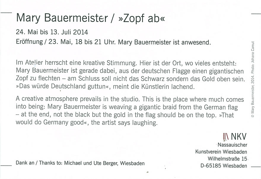 "Zopf ab" , 24. Mai bis 13. Juli 2014
